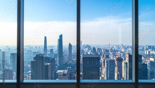 City skyline view from a modern office urban environment high-rise architecture business setting daylight perspective