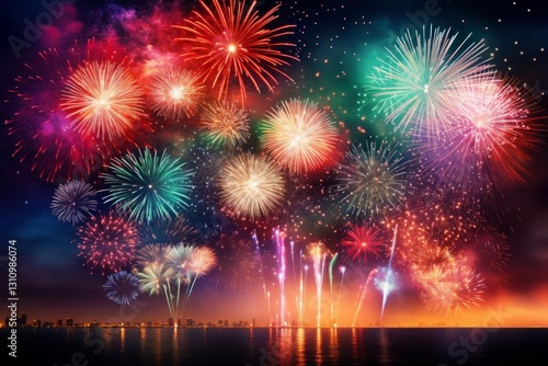 Cityscape, Fireworks, Celebration, SkylineView, NightSky, UrbanGlow, CityLights, FestiveVibes, NewYearEve, PartyTime, IlluminatedSky, ColorfulFireworks, NightPhotography, FestivalOfLights, Independenc