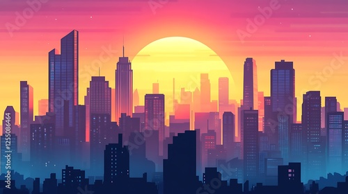 Cityscape Sunset: A Vibrant Metropolis at Golden Hour