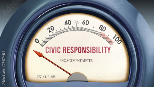 Civic Responsibility and Engagement Meter that hits less than zero, showing an extremely low level of civic responsibility, none of it, insufficient. Minimum value, below the norm. ,3d illustration