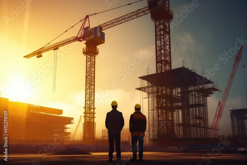 civil engineer standing at the construction site. Generative AI.