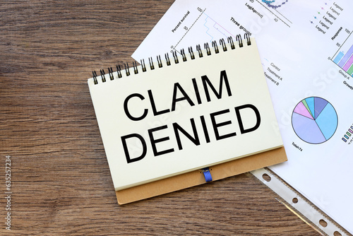 Claim denied text on the page. Desktop. financial charts