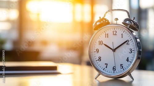 Classic Alarm Clock Positioned in Bright Morning Light Creating a Timeless Feel : Generative AI