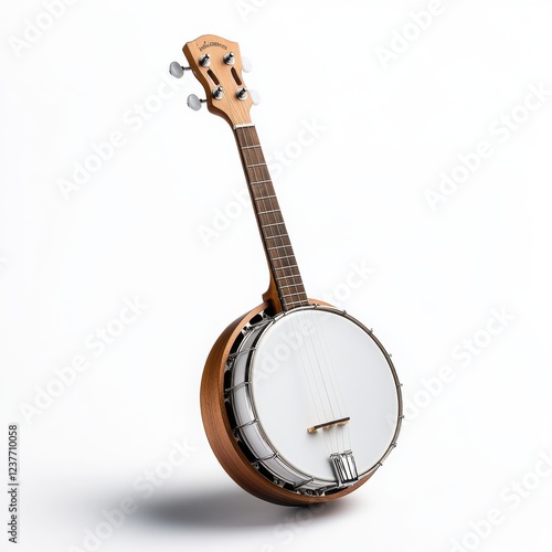 Classic Banjo with Wooden Neck and White Drum Skin on a Clean Background for Musical Instrument Displays