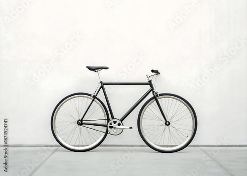 Classic black bicycle against a stark white wall