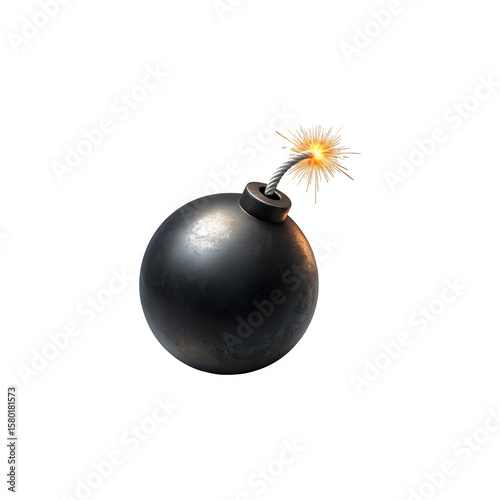Classic black bomb with a lit fuse and sparks isolated on transparent background