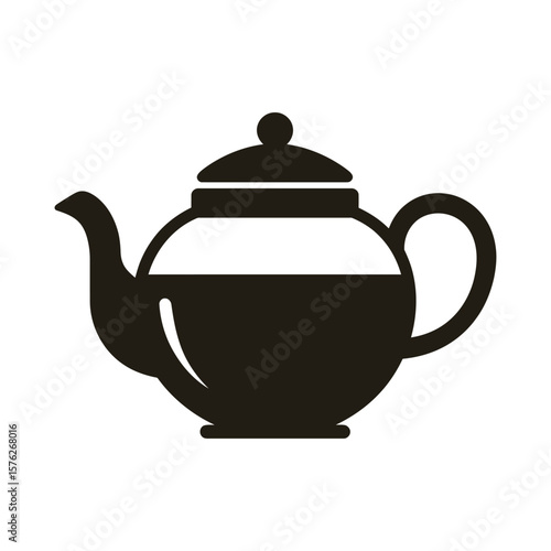 Classic black teapot silhouette with a band of white indicating liquid level isolated on white background