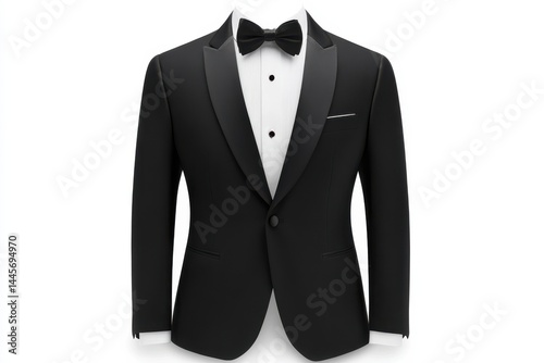 Classic black tuxedo jacket perfect for formal events sharp lines crisp white shirt elegant bow tie