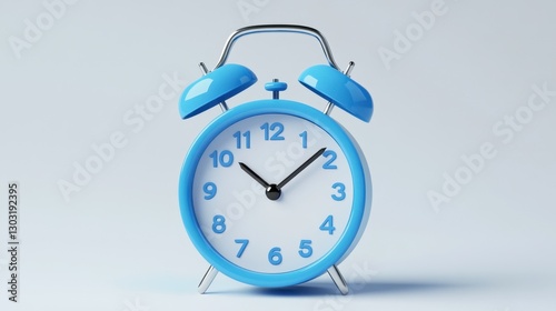 Classic Blue Alarm Clock on Minimalistic Background with Time Display