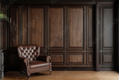 Classic cabinet wall of brown wood panels wallpaper, ai
