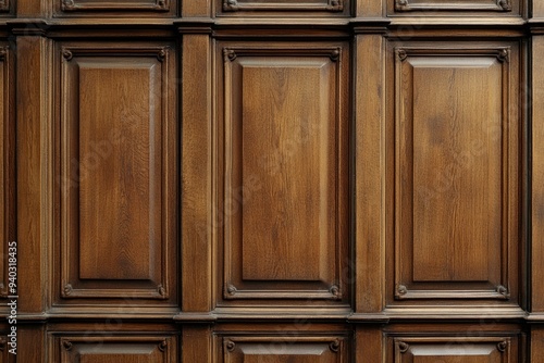 Classic cabinet wall of brown wood panels wallpaper, ai