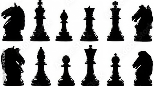 Classic Chess Figures and Strategic Board Game Silhouettes: Vector Artwork for Chess Enthusiasts and Education Resources