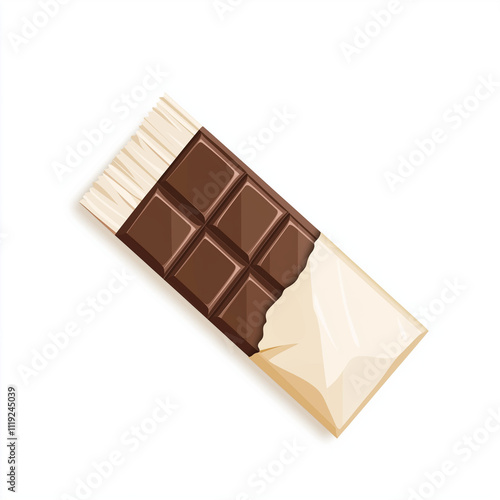Classic chocolate bar partially unwrapped on white background.