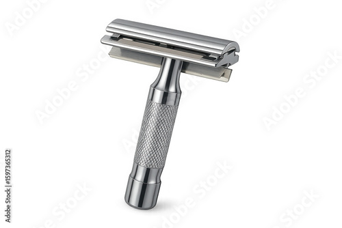 Classic double edge safety razor with chrome finish and textured handle for shaving