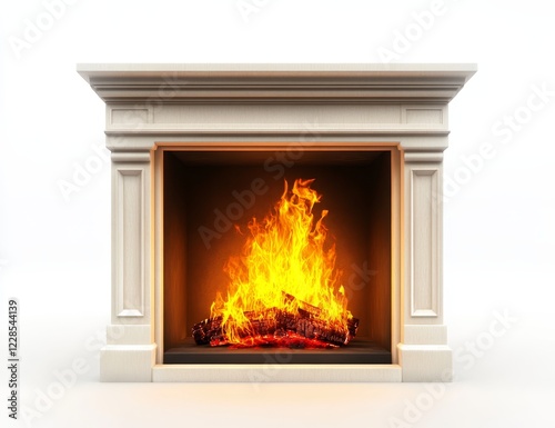 Classic fireplace with burning fire.