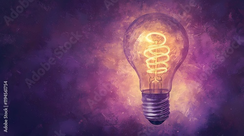 Classic glass incandescent bulb with visible filament, radiating soft light, representing creative energy, style book illustration