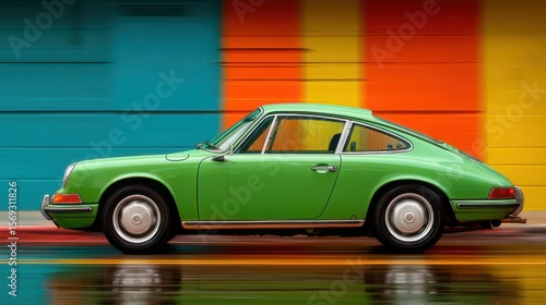 Classic Green Car with Color Stripe Wall