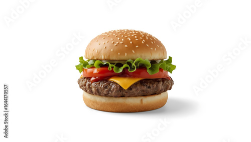Classic hamburger featuring a juicy, perfectly grilled beef patty, fresh lettuce, ripe tomato, and soft toasted bun a timeless fast food favorite with rich flavor and irresistible appeal.