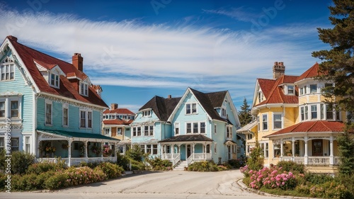 Classic houses on Mackinac Island in Michigan. Simulated from actual sources