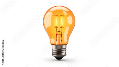 Classic incandescent light bulb with a glowing illuminated filament isolated on a pure white studio background Vintage style lighting element with warm radiant glow for design