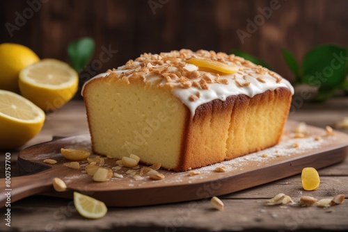 'classic lemon pound cake rustic wooden background citrous loaf bread muffin piece baked bakery brown closeup portion cooking delicious dessert food fresh fruit epicure healthy homemade pastry pie'