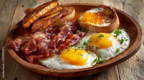 Classic Morning Meal with Toast, Eggs, and Sausage