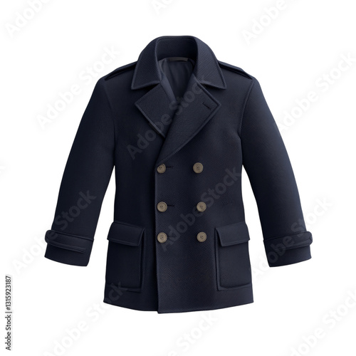 Classic Navy Blue Peacoat on Transparent Isolated on transparent background