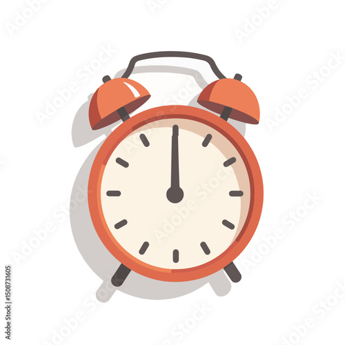 Classic orange alarm clock showing twelve oclock. This timepiece features a simple design with clear numbers and hands. Alarm clock illustration perfect for website design or app interface.