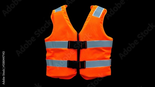 Classic orange life vest with reflective strips, placed on a solid black background.