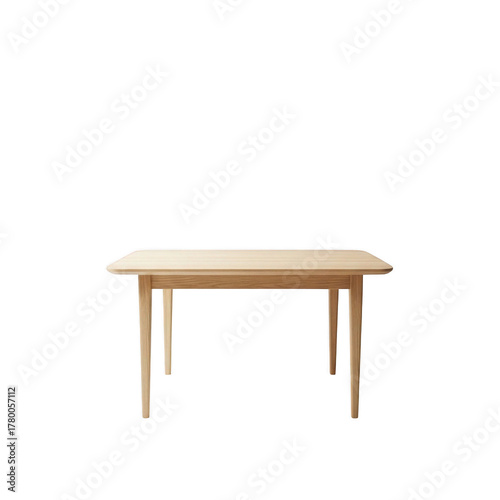 Classic rectangular wooden dining table with tapered legs isolated on transparent background