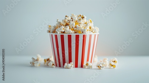 Classic Red And White Striped Popcorn Bucket Filled With Fresh Popcorn