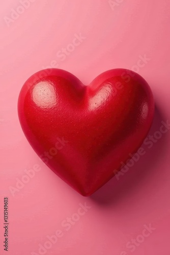 Classic red heart, shiny texture, pink backdrop, valentines day, cute