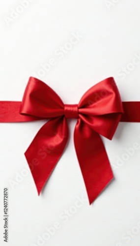 Classic red satin bow, elegantly tied on pristine white background, red ribbon, close-up, decoration