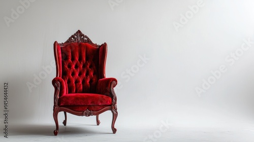 Classic red velvet throne chair, front view, clean white backdrop