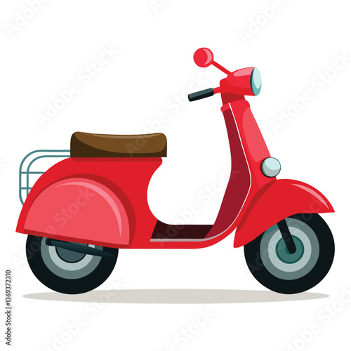 Classic Red Vintage Scooter Illustration Side View Transportation Design Element