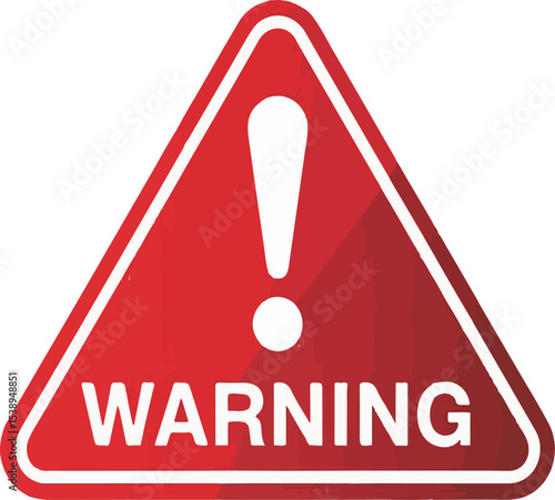 Classic red warning sign icon features a white exclamation mark alerting danger with the text warning