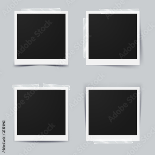 Classic retro style. Set of vector template photo frame with adhesive tape, Isolated on gray background. design for your photography and picture. Vector Illustration