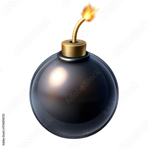 Classic Round Bomb with Lit Wick Illustration – Cartoon Explosive Icon PNG