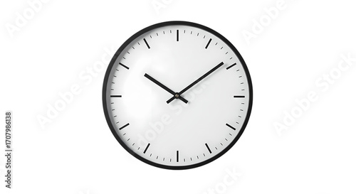 Classic Round Wall Clock Minimalist Timepiece Design on transparent background