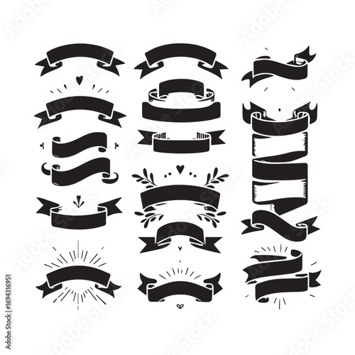 Classic Scrolls and Empty Ribbon Design Pack – Vintage Badge and Banner Illustration