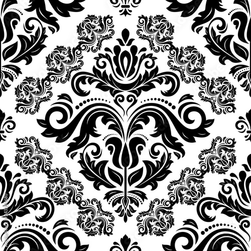 Classic seamless vector pattern. Damask orient ornament. Classic vintage black and white background. Orient ornament for fabric, wallpaper and packaging