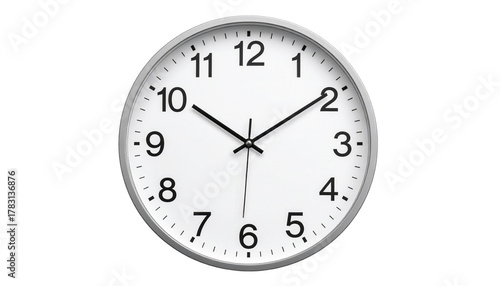 Classic Silver Frame Analog Wall Clock Showing Time Isolated on Transparent Background