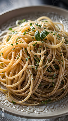 Classic Spaghetti Aglio e Olio with Fresh Basil Garnish
