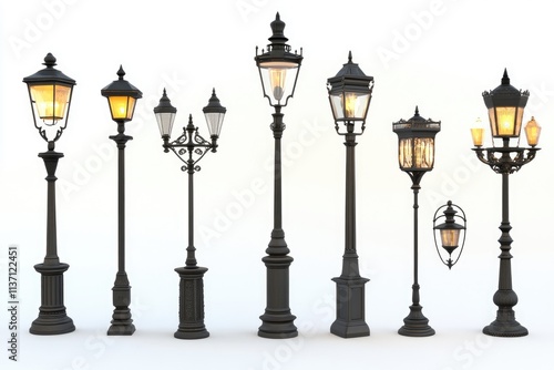 Classic Street Lamps: Elegant Designs Illuminate Urban Spaces with Style and Grace. Various Styles for Cityscapes.