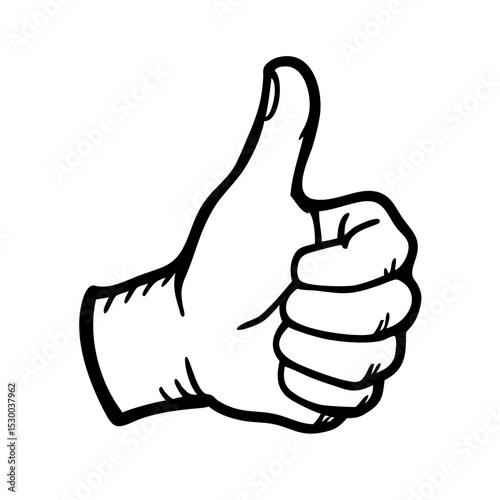 Classic Thumbs-Up Illustration in Hand-Drawn Black Ink with Cartoon-Like Style and Positive Expression