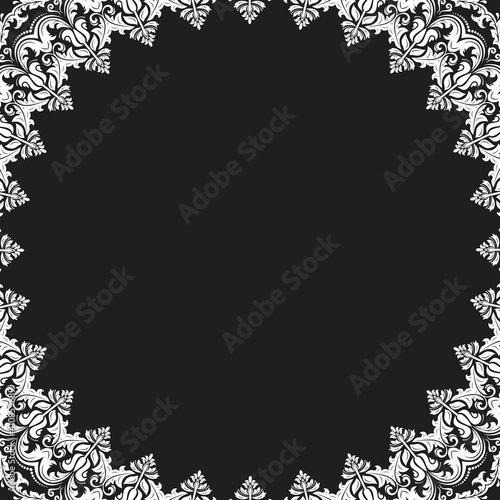 Classic vector square frame with arabesques and orient elements. Abstract round black and white ornament with place for text. Vintage pattern