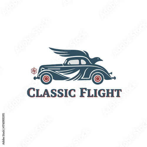 Classic Vintage Car with Flying Bird Wings: Speed and Freedom