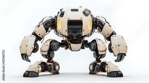 Classic vintage toy robot with mechanical arms and legs isolated on white background