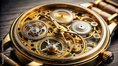 Classic watch ticking away with golden gears and springs, mechanics, machinery, mechanics, machinery