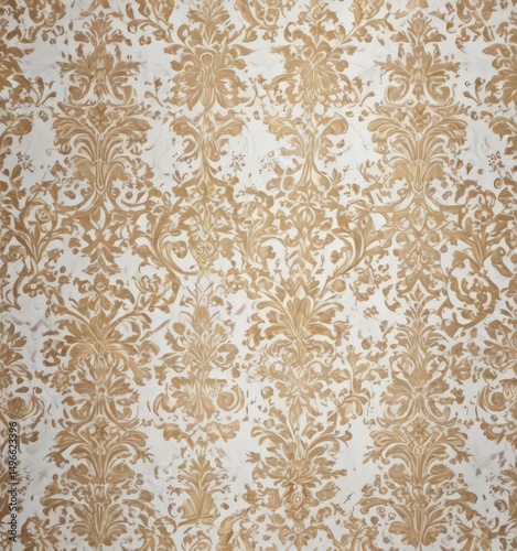 Classic white gold damask, sophisticated seamless pattern, rich texture, wallpaper design